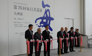 12日の開会式には九州展担当理事である毎日書道会の三宅相舟顧問と室井玄聳理事の両氏をはじめ、尾野賢治大分県副知事、高添博之西部本社代表らが出席し、テープカットで開幕を祝いました。三宅顧問は「九州展のレベルの高さに驚くとともに熱いものを感じ、気が震え、洗われた。まさに毎日書道会が掲げるスローガン『伝統と革新』にふさわしい展覧会になった」とあいさつしました。