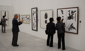 開会式後には室井理事による特別作品解説があり、各地から集まった書家や熱心な書道ファンらが貴重な話に耳を傾けていました。会期中には連日、九州地区の審査会員による作品解説もありました。また、国際高校生選抜書展の九州地区の優秀作26点も展示されました。